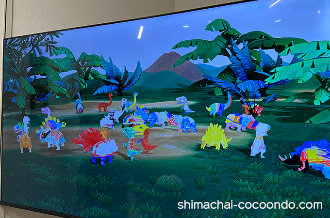 自分の描いた恐竜が画面に出てきて動き出すものです☆